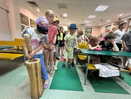 Dzieci wzięły udział w warsztatach dotyczących zapylaczy. Odwiedziły ogród społeczny i samodzielnie stworzyły domki dla pszczółek murarek.