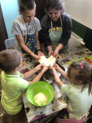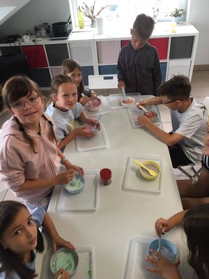 Na kulinarnych warsztatach dzieci przygotowaly "Szrekowe" nalesniki. Wyszły przypyszne.